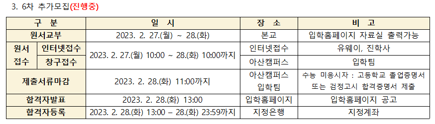 2023학년도 6차 추가모집 안내
