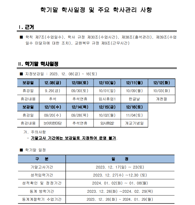 학기말 학사일정 (23-2학기)